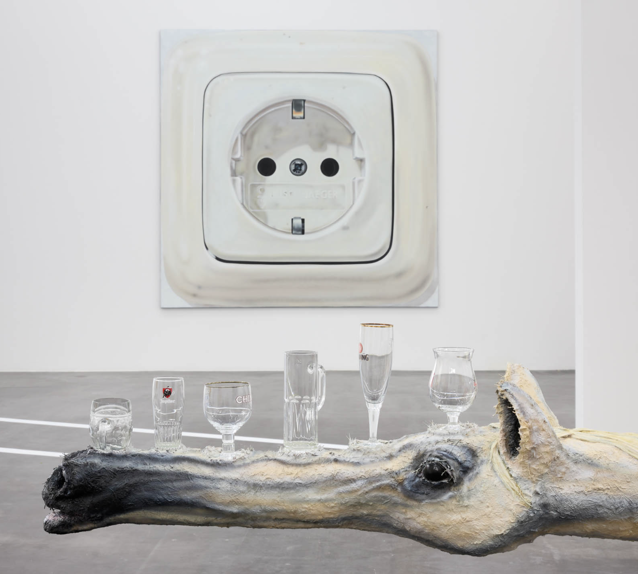 Power and institutionality likewise motivate a group of paintings that depict electrical sockets. “For Euler,” notes Catherine Chevalier, “the exhibition is a device for circulating energy.” In solo shows at Kunsthalle Zürich, the Stedelijk Museum, and WIELS in Brussels, such canvases highlight circulation’s often binary framing: on/off, input/output, male/female. Yet, here as elsewhere, Euler ultimately implies power’s dimensionality as not binary but multiple—and often hidden, whether by architectural cladding or art historical myths.
