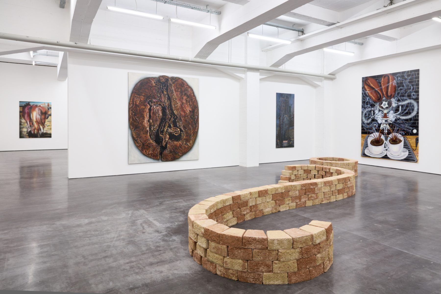 Since the mid-2000s, German artist Jana Euler has produced a heterogeneous body of work that diagrams painting’s social, material, and historical bases. Known for her exacting technique and a cast of characters both real and imagined, Euler “doesn’t break convention,” writes Isabelle Graw, but rather “makes the sometimes-excruciating restraints it imposes visible and explicit, performing a black comedy of accommodation.” Old or new masters—from Leonardo to Duchamp, Georg Baselitz to her Städelschule teacher Michael Krebber—provide Euler with templates that she is free to bloat, vaporize, or otherwise pervert. Pop icons serve as references, too (Ed Sheeran, Whitney Houston), as do animals, whether phallic sharks and slugs or Morecorns, a mythical creature of her own invention. Often treating her subjects with deadpan affect, she renders the familiar inscrutable.
