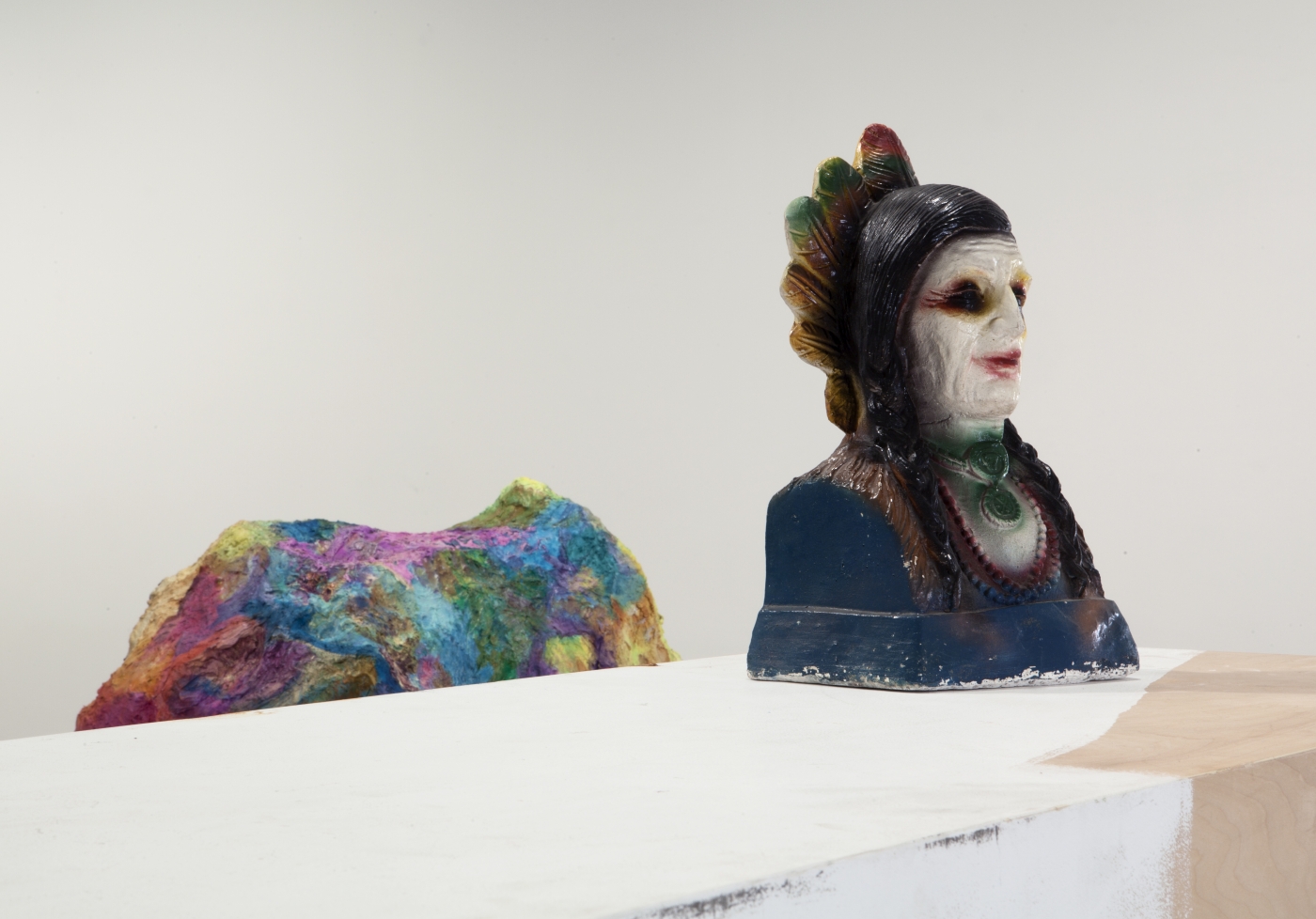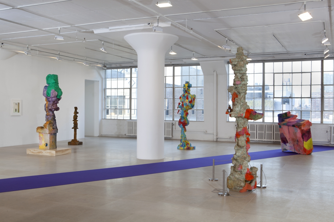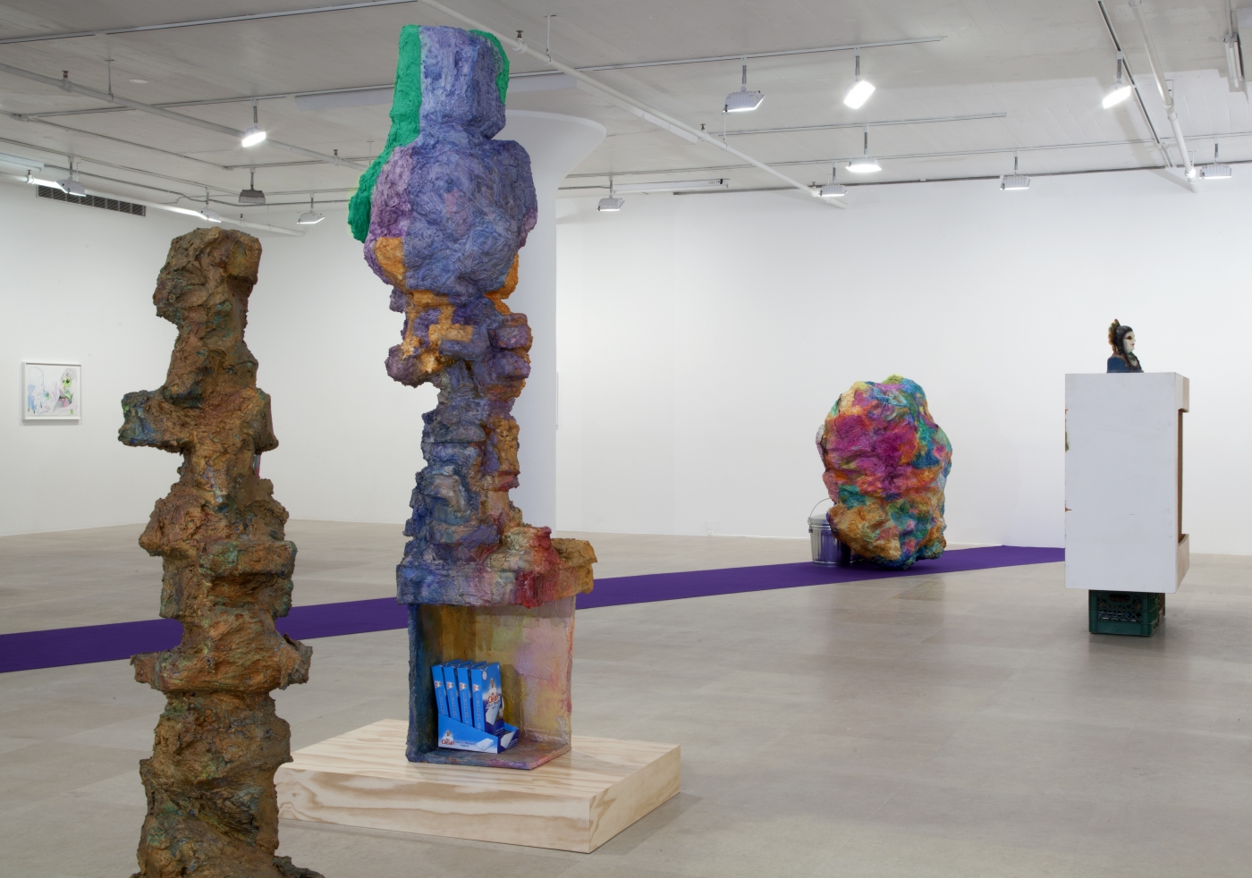 Greene Naftali is pleased to present The Help, an exhibition by Rachel Harrison. The Help marks the New York artist’s sixth solo show at the gallery since 1997 and the first since If I Did It in 2007. The exhibition shares its title with Harrison’s photograph of the back door maintenance entrance to Duchamp’s Étant donnés, which is visible in the exhibition galleries of the Philadelphia Museum of Art, and alludes to the entangled roles of the Artist, the Muse, and the Help. The twelve sculptures on view in the exhibition combine formalist inspiration and tragicomic epiphany and are imbued with Harrison’s signature sense of slapstick timing. The Help also introduces a group of drawings in which Harrison explores the passion and pathology of the tortured artist, a figure suspended between the pressures of ambitious creative vision and the public hunger for performance.