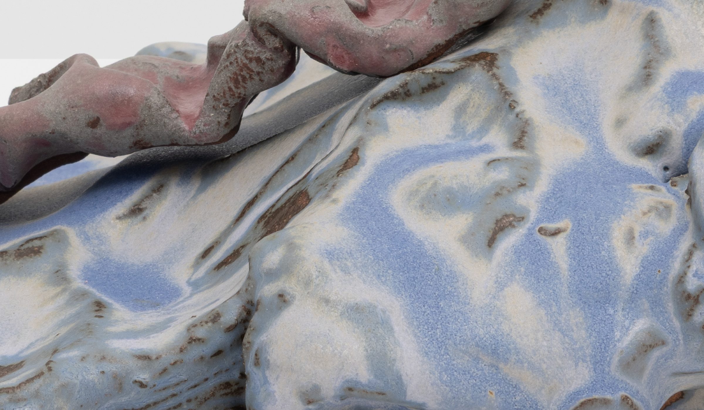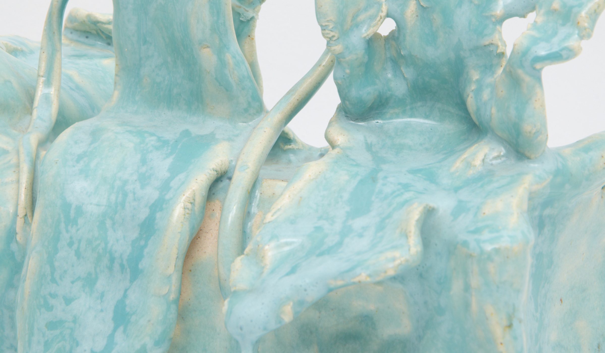 Born in Damascus in 1942, Fattal was raised in Lebanon and educated in Beirut and Paris, where she studied archaeology at the École du Louvre and philosophy at the Sorbonne. In 1969 she returned to Beirut, where she began her career as an artist, exhibiting her paintings locally through the start of the Lebanese Civil War. She left the city in1980 and resettled in California. There she founded the Post-Apollo Press to publish avant-garde authors from around the world. By 1988 Fattal had resumed her visual art, enrolling at the San Francisco Art Institute where she discovered ceramics, coaxing a near-animistic quality from the supple medium of clay. As Negar Azimi has remarked, her “figures look as old as the earth and yet they breathe.” Fattal eventually returned to Paris where she still resides, making a body of work informed by poetry and myth that views the deep past through living eyes.