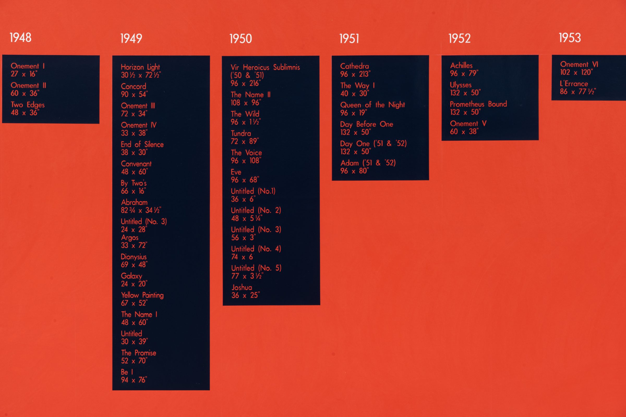 David Diao, Barnett Newman: Paintings by Title & Size, 1992 (detail)